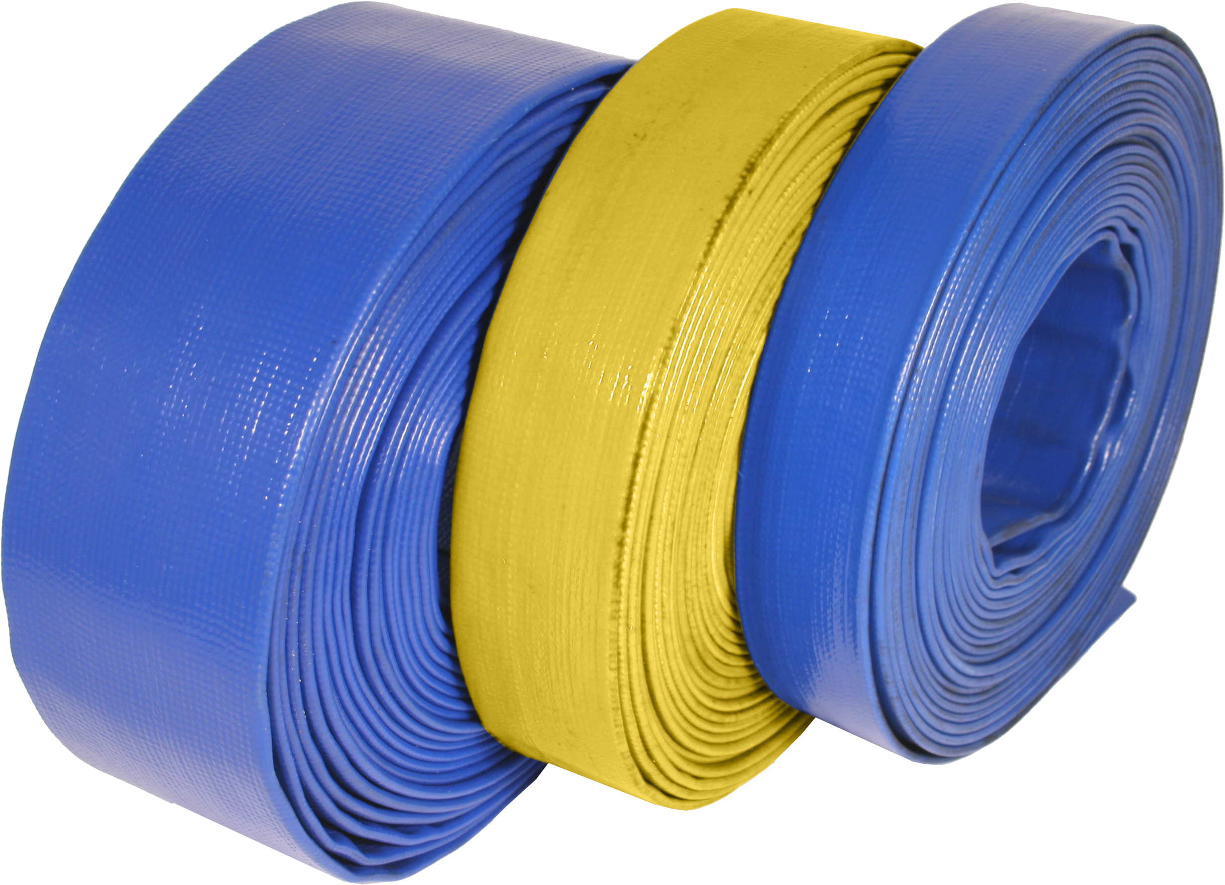 Yellow layflat hose is very similar to the blue layflat, but has a higher working pressure rating, capable of handling up to 6 BAR / 90 PSI, also with a 3:1 safety factor, meaning it can handle pressure peaks of up to 18 BAR / 270 PSI. The yellow layflat is available in 7 internal diameters from 25mm (1 inch) to 153mm (6 inches) and is available in 4 standard lengths from 10m to 100m.